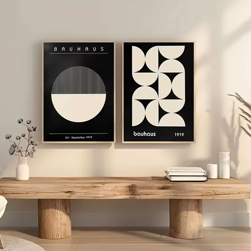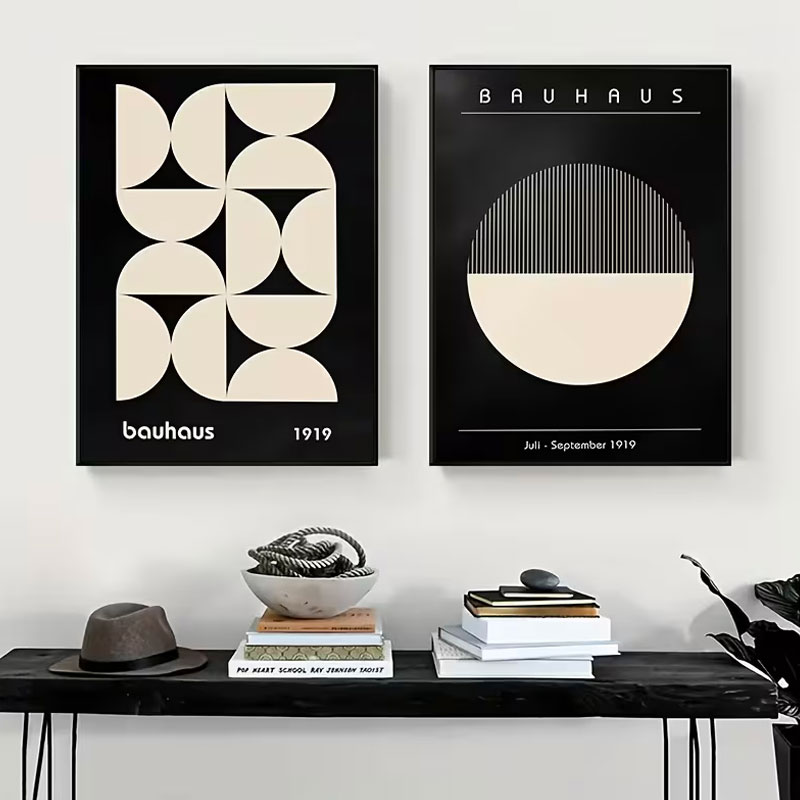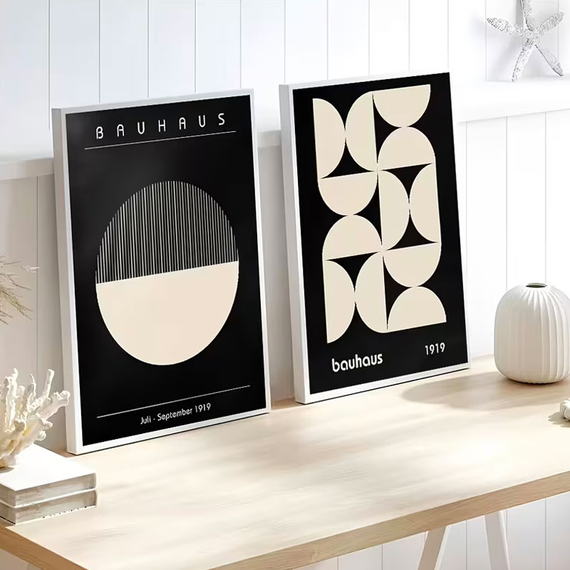 Apportez une touche de modernisme et de minimalisme à votre intérieur avec cet ensemble de 2 impressions d’art géométrique de style Bauhaus. Chaque affiche présente des motifs noirs et blancs audacieux et équilibrés, idéaux pour enrichir votre salon, chambre à coucher ou tout espace de vie.