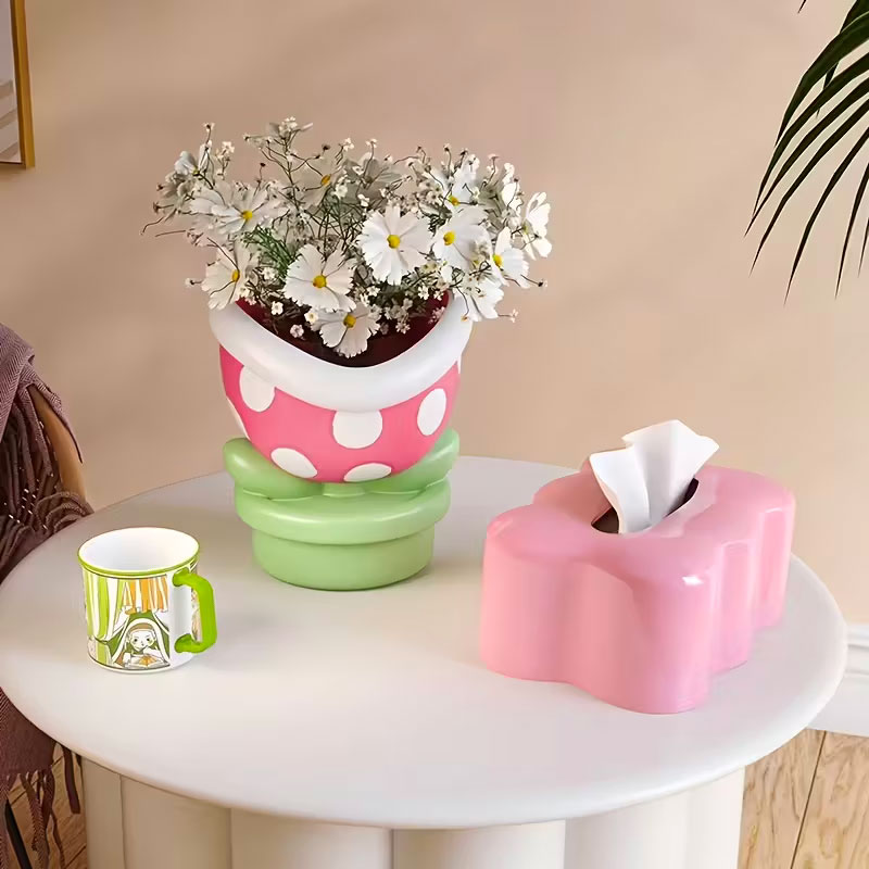 Ajoutez une touche de fantaisie à votre intérieur avec ce vase en résine en forme de fleur, vibrant et mignon. Parfait pour accueillir des fleurs artificielles, il met en valeur la beauté de votre décoration tout en apportant une ambiance joyeuse et originale.