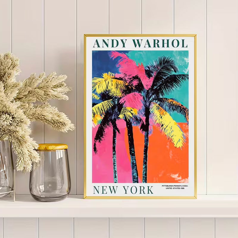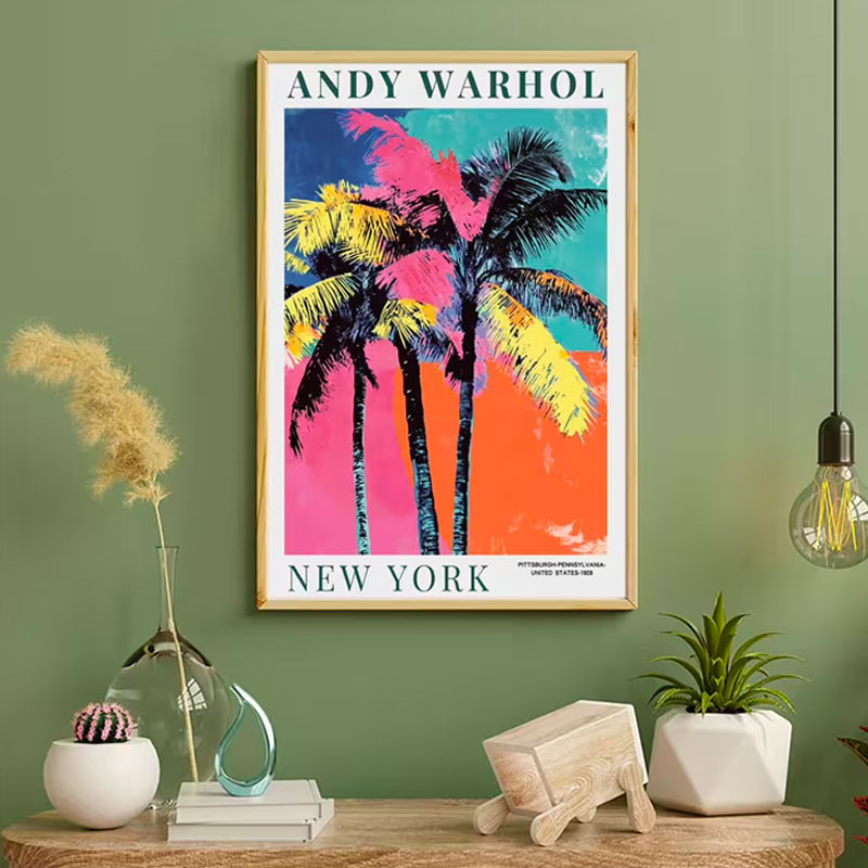Apportez une touche audacieuse et colorée à votre intérieur avec cette affiche d’art pop inspirée de Andy Warhol. Représentant un palmier tropical décliné dans des nuances vibrantes de rose, jaune et vert, cette œuvre capture l’esprit iconique et moderne du Pop Art.