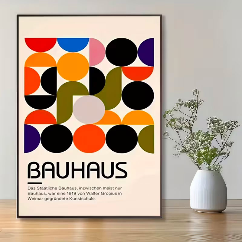Apportez une touche artistique et contemporaine à votre intérieur avec cette affiche décorative Art Bauhaus au design géométrique moderne. Inspirée du mouvement emblématique né en 1919 à Bauhaus en Weimar, cette œuvre met en valeur des formes épurées, des lignes structurées et des couleurs vibrantes pour créer un impact visuel fort et élégant.