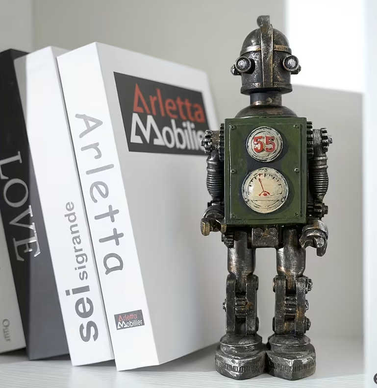 pportez une touche unique à votre intérieur avec ce robot rétro style punk américain, parfait comme accessoire créatif pour photographie ou décoration originale. Idéal pour fenêtre, salon, entrée ou bibliothèque, il combine style industriel vintage et charme artistique, donnant du caractère à tous vos espaces.
